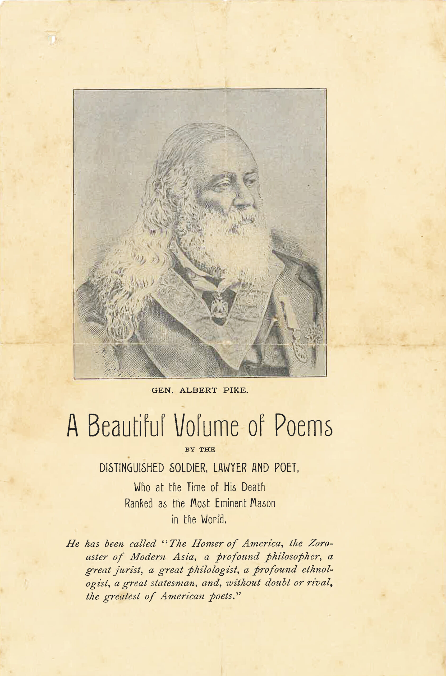 A Rare Piece of Albert Pike Ephemera – A Sales Flyer for “A Beautiful Volume of Poems”
