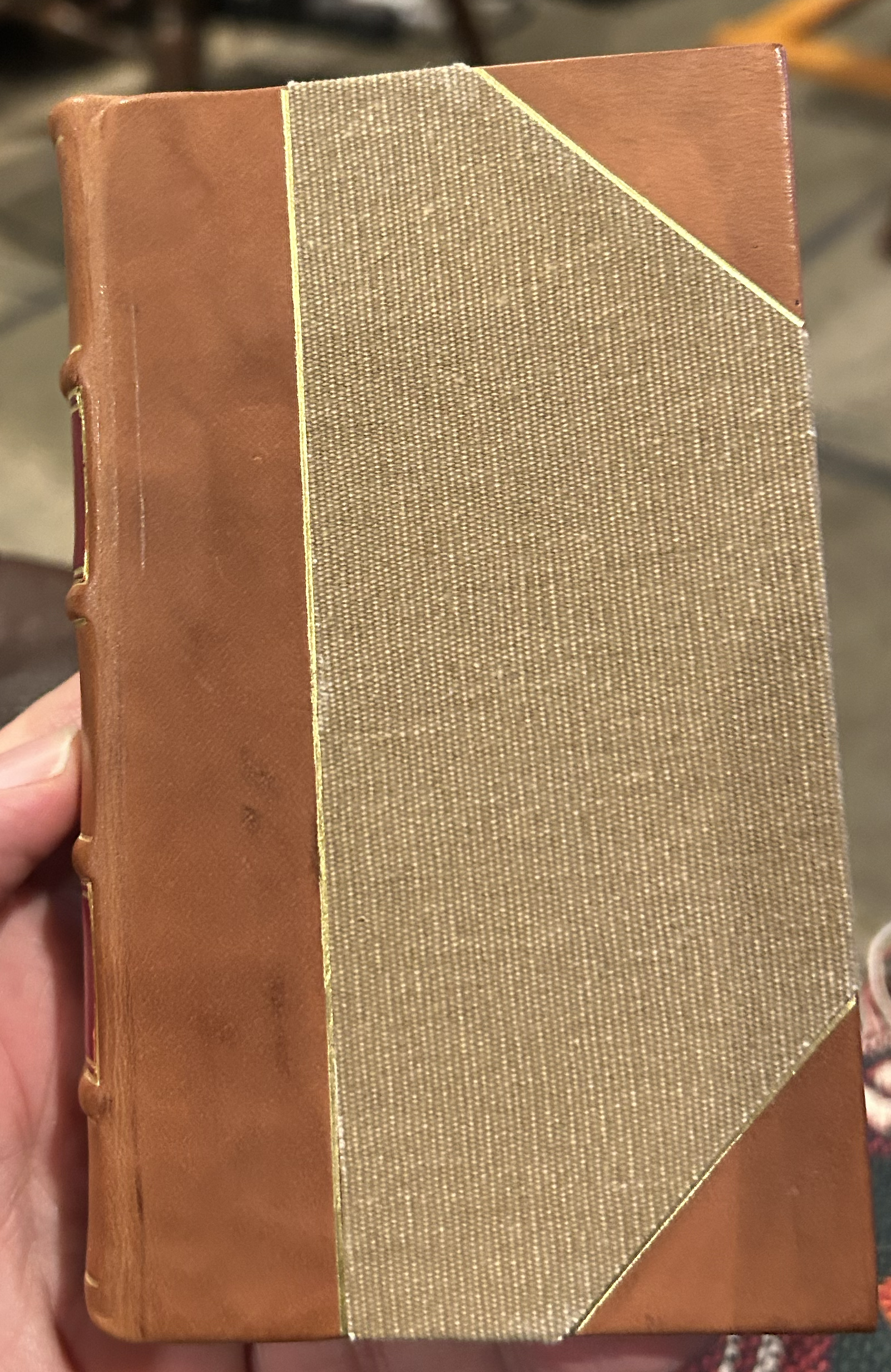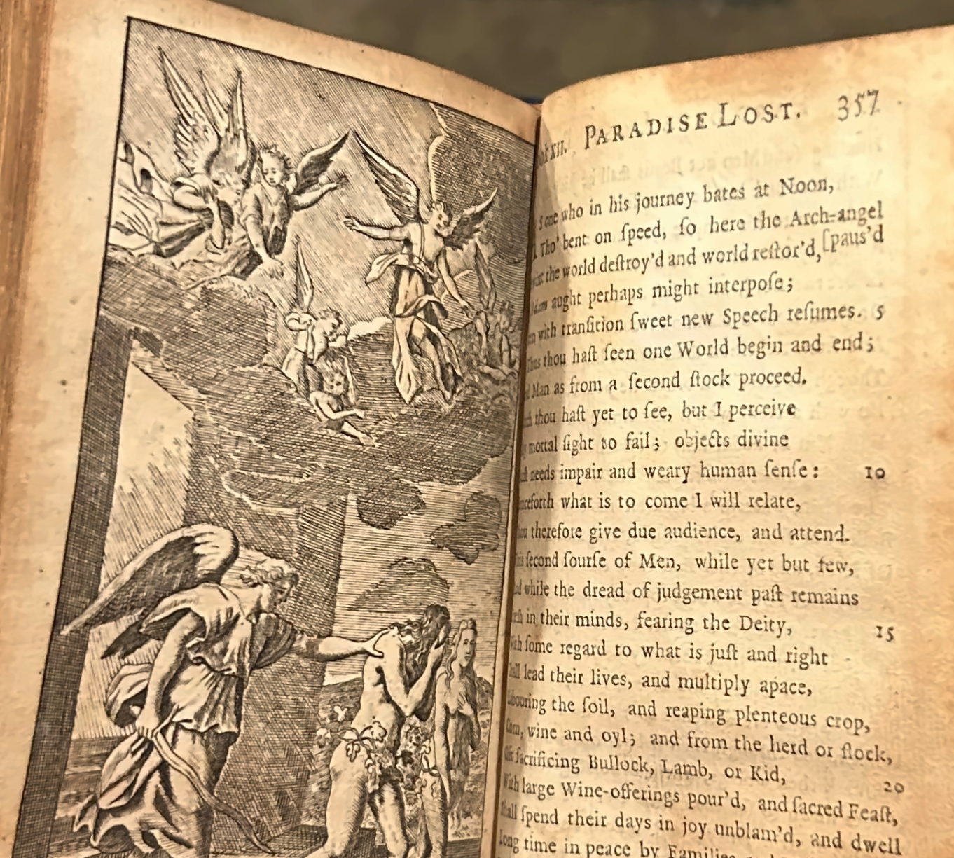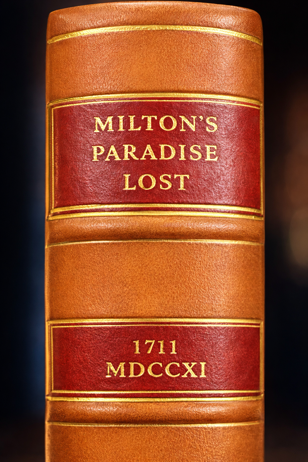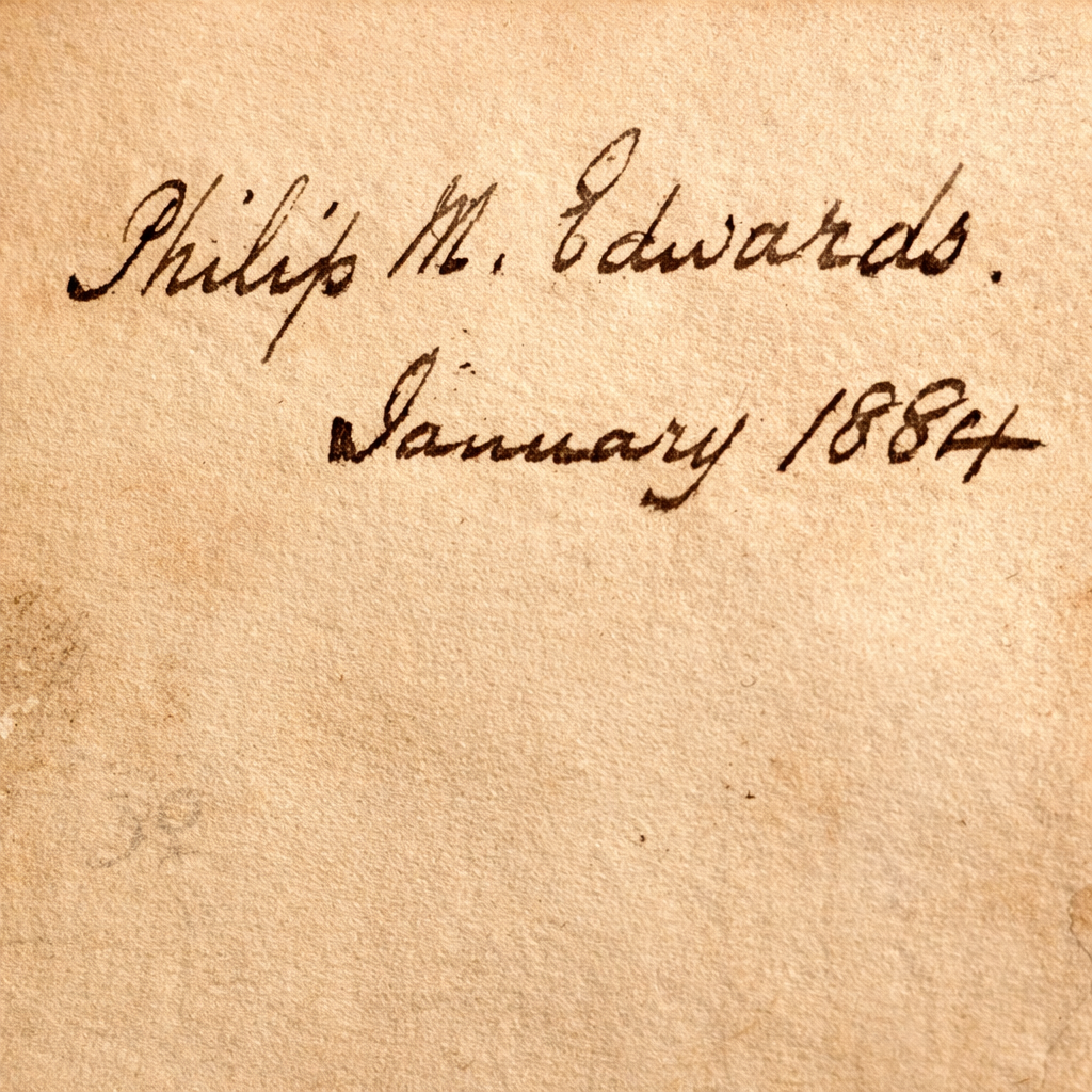 This is a fine copy of John Milton’s “Paradise Lost A Poem, in Twelve Books printed in 1711, The Ninth Edition, Adorn’d with Sculptures.” London: Printed for Jacob Tonfon, at Shakespeare’s Head, over-against Catherine Street in the strand MDCCXI. The book is recently rebound in quarter calf binding, brown cloth boards. Name written in ink, on fly page, “Phillip M. Edwards January 1884.” 5 1/4″ x 3″ x 1″.